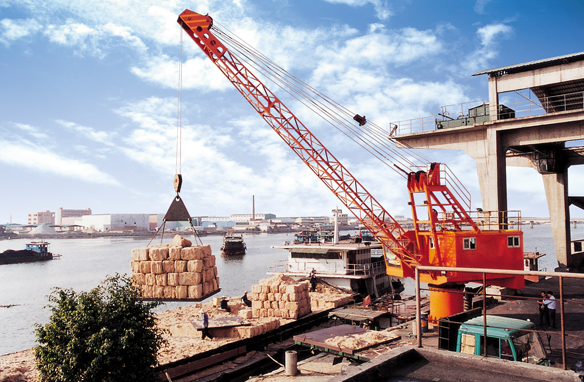 GQ fixed crane can carry out loading and unloading operations between banks and ships, with high efficiency, good stability and flexible operation. It is an ideal loading and unloading equipment for inland rivers and lakes. It is especially suitable for a large number of loading and unloading operations at the wharf. Users can choose to configure a hook or grab. The hook or grab can be used for loading and unloading in full working range, such as steel, bagged goods, wood, etc. When the special multi-leg hook is used, it can lift multiple goods at one time. When equipped with electromagnetic chuck, scrap steel can be lifted.