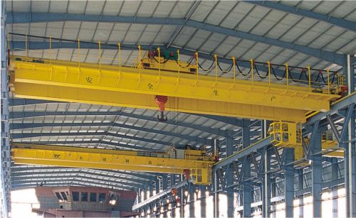 QD通用桥式胜游网页版页面是一种常见的起重设备,它可以沿着厂房行车梁上的轨道纵向移动、小车横向移动和吊钩升降,实现各种物料的吊运。它的结构主要由桥架、大车运行机构、小车、电气设备等组成。