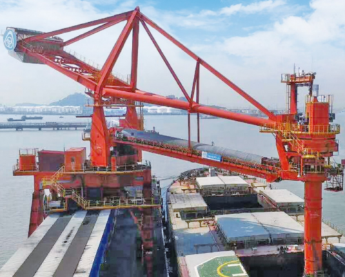 港口码头卸船机(Ship Unloader)是一种专业用于卸载大型船只货物的机械设备。其结构与塔吊类似,但港口卸船机具有更大的工作范围和起重能力,能够卸载各种形状和重量的货物,如散装货物、液态货物、集装箱等。