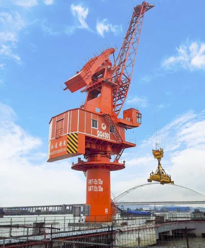 GQ4535固定式港口胜游网页版页面用于港口、中小型码头,亦可用于库场,堆栈或厂区内,进行件杂货或散货装卸作业。固定式吊机为单臂架式,钢丝绳变幅,采用复滑轮补偿,货物可作水平位移,因此可全幅度带载变幅,作业效率高。旋转支承采用单排滚珠座圈,可作360。全旋转,运转平稳,使用可靠。